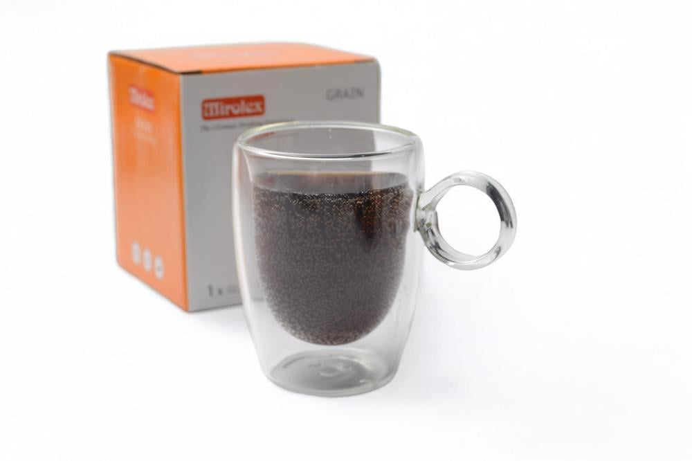 • سهل الغسيل - مصنوع من زجاج عالي المقاومة للحرارة والذي يسمح بتغيير درجة الحرارة بشكل مفاجئ في 150 درجة مئوية. لذا يمكن غسل كوب القهوة الشفاف في غسالة الأطباق