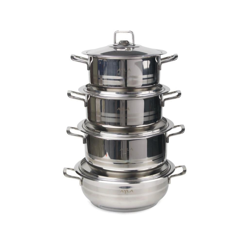 🍳 طقم قدور استيل دروبينا 8 قطع – مقاسات متعددة – صناعة تركية 🇹🇷✔️ العلامة التجارية: AYLA