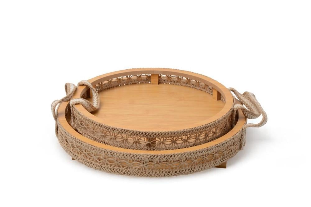 طقم صواني تقديم خشب أنيق مكون من 2 حبة 🟢 تصميم دائري مزخرف يضفي لمسة جمالية راقية 🟢 المقاسات: - الصينية الكبيرة: قطر 33 سم - الصينية الصغيرة: قطر 29 سم 🟢 مصنوعة من خشب متين وعالي الجودة 🟢 مثالية لتقديم القهوة، الشاي، الحلويات والضيافة🔹تابعونا على تيك توك من هنا 🔹تابعونا على سناب شات من هنا🔹تابعونا على انستجرام من هنا